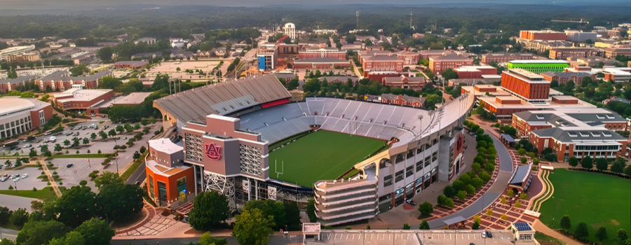 A: Auburn’s overall Walk Score is low, but its downtown and campus neighborhoods are highly walkable.
